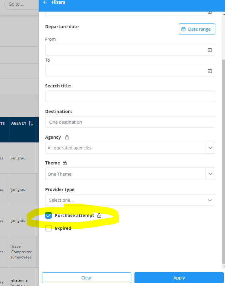 - You will see a list of travel ideas with a standard title format that includes the date of the purchase attempt.